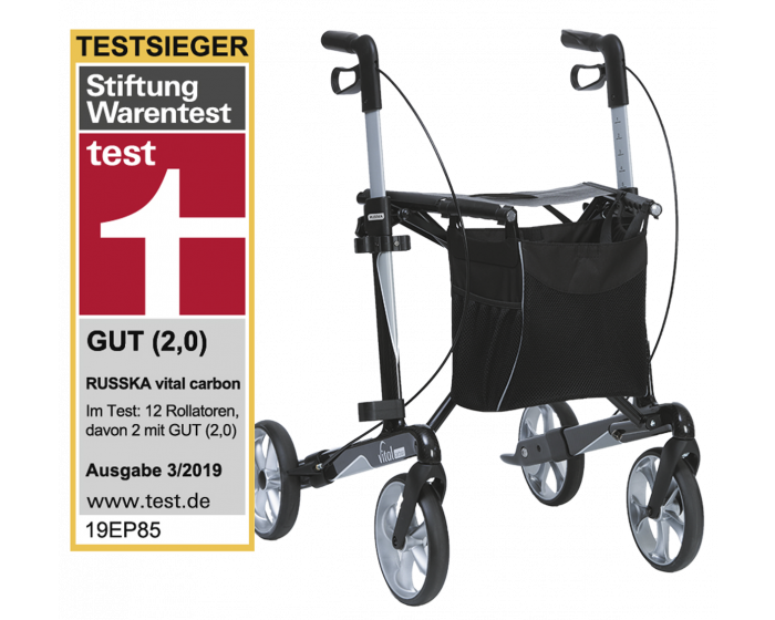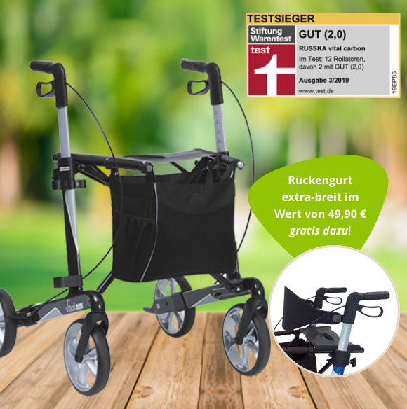 Der vital plus verwöhnt zusätzlich Hände und Gelenke: Seine weichen Räder dämpfen die Stöße von unebenen Untergründen, etwa von Kopfsteinpflaster und Feldwegen. Lieferung inklusive Stockhalter.
