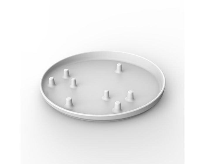 Der Einhandteller hilft Menschen die Mahlzeiten des Tages in mundgerechte Stücke zu schneiden und mit Gabel oder Löffel aufzunehmen. Die limitierte Beweglichkeit, Funktion oder Griffkraft einer Hand kann dadurch clever ausgeglichen werden. Durch die bewusste Anordnung der unterschiedlich großen Zylinder ergeben sich vier unterschiedliche Schneide- und Essensbereiche: Der hohe Rand dient als Aufschiebehilfe für kleine Stücke. Die Saucenschräge unterstützt das Aufnehmen von Flüssigkeiten mit dem Löffel. Der tiefe Rand erleichtert das Schneiden und Zerteilen. Die schmalen Zylinder im Innenbereich des Tellers können zum Aufspießen und Fixieren von Speisen verwendet werden. Zusätzlich sorgt die Unterseite mit Silikonfüßen für einen stabilen Halt auf dem Tisch.