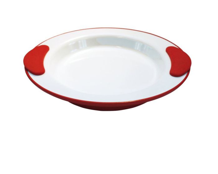 Dieses Geschirr ist doppelwandig: Füllen Sie am Rand heißes Wasser ein – und Sie können Ihre Speise länger appetitlich warm genießen. Die rutschfesten Griffkissen geben einerseits festen Halt beim Greifen und verstecken wunderbar die Öffnungen. Der Anti-Rutsch-Ring am Boden verhindert ein Verrutschen. In verschiedenen Farben erhältlich.